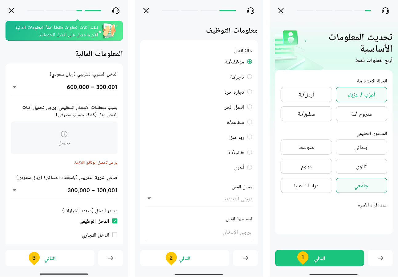 الخطوة 3: املأ معلوماتك الشخصية والوظيفية والمالية بدقة، ثم انقر على "التالي".