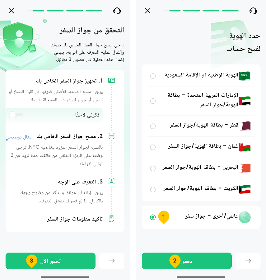 يمكن للمستخدمين الأجانب الآن فتح حساب باستخدام جواز السفر. وللبدء، يُرجى اتباع الخطوات التالية: