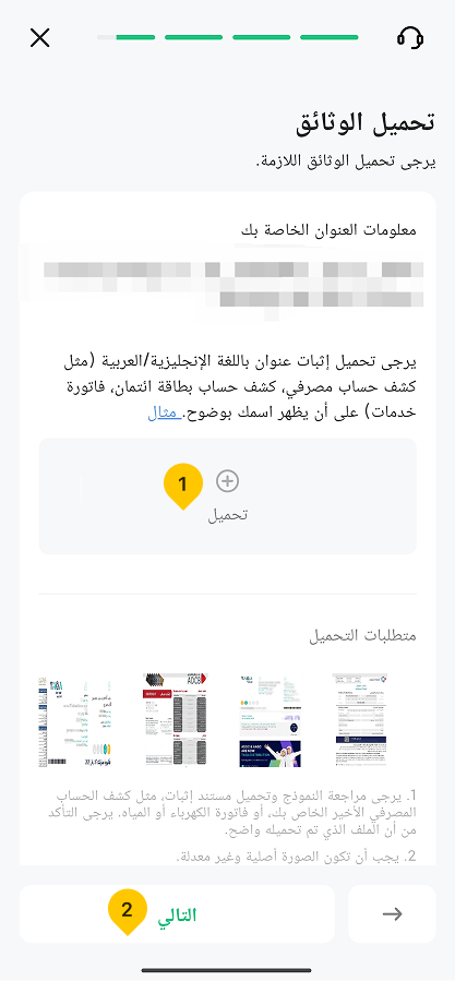 الخطوة 6: قم بتحميل الوثائق المطلوبة، ثم انقر على "التالي".