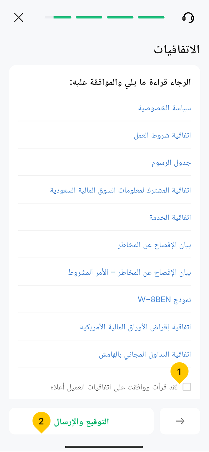 الخطوة 8: اقرأ شروط الاتفاقية بعناية، ثم انقر على "التوقيع والإرسال" للمتابعة.