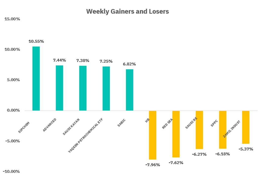 From the perspective of individual stock performance, 81 companies saw their stock prices rise this week, while 186 companies saw their stock prices fall. The companies with the highest increase included SIPCHEM, ADVANCED, SAUDI KAYAN, with increases of 10.55%, 7.44%, and 7.38% respectively. The companies with the highest decline included HB, RED SEA, SAUDI RE with declines of 7.96%, 7.62 %, and 6.27% respectively.