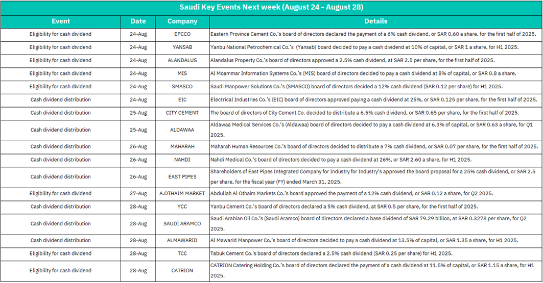 SAUDI ARAMCO - Cash dividend distribution (Base dividend SAR 79.29 billion, SAR 0.3278/share for Q2 2025)