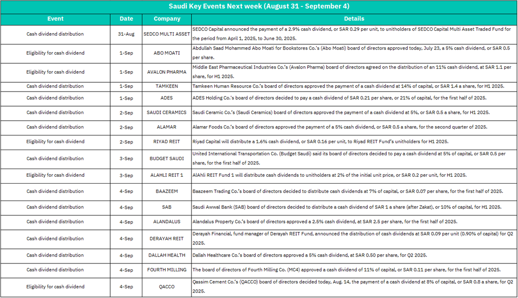 TASI Index Weekly Market Summary (August 24 to August 28)