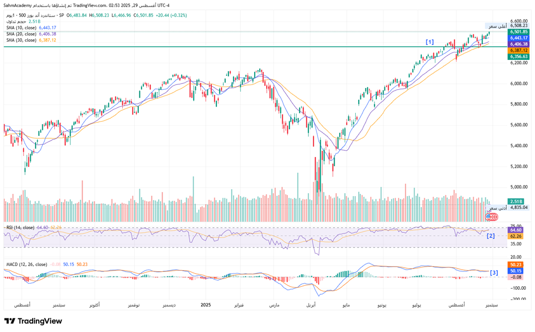 The S&P 500 Index continues to exhibit exceptional strength. The index has achieved a remarkable recovery from the March 2025 lows around 4,835, representing a powerful bull run of over 34% that has propelled the market to new all-time highs near 6,508. The moving average structure remains unequivocally bullish, with the 10-day SMA at 6,443.17, 20-day SMA at 6,406.38, and 30-day SMA at 6,387.12 all providing ascending support beneath current price levels. This alignment confirms the persistence of institutional buying and trend-following momentum.