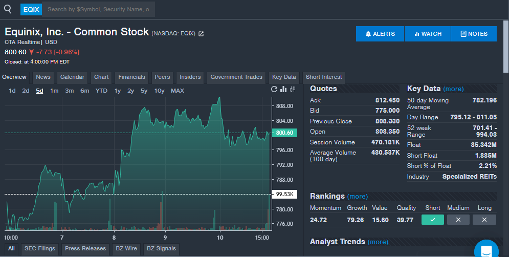 Equinix EQIX | 800.60 | -0.96% |